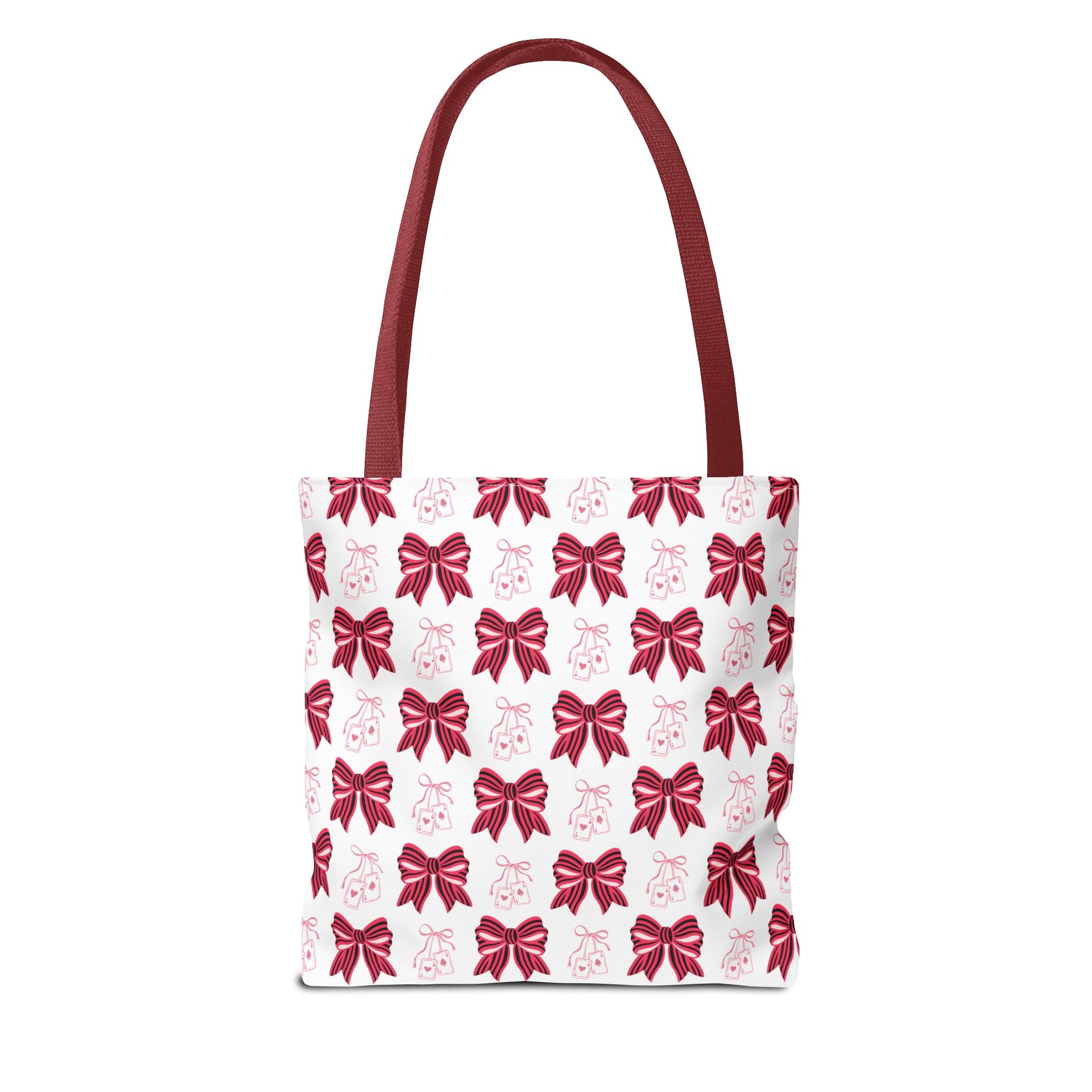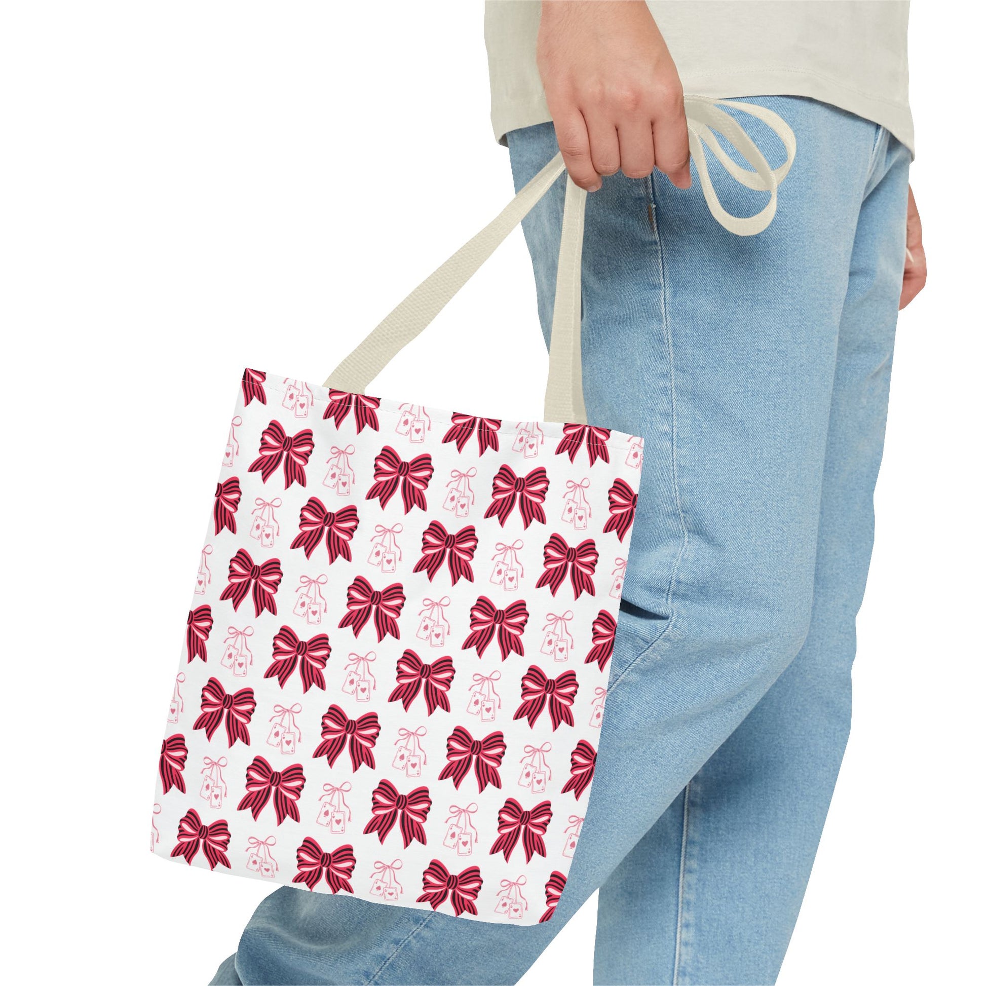 Introducing a vibrant and stylish Tote Bag, designed to elevate your everyday adventures! This eye-catching accessory features a lively pattern adorned with bows, perfect for adding a touch of fun to any outfit. Made from 100% polyester, this tote is not only durable but also lightweight, making it ideal for daily use. Whether you're heading to the grocery store, the beach, or a casual outing with friends, this tote bag fits seamlessly into your lifestyle. It's perfect for anyone who loves to express their personality through their accessories. Ideal for holidays like Valentine's Day or festive occasions where gift-giving is a must, this tote bag is a thoughtful present for loved ones who appreciate unique style and practicality.